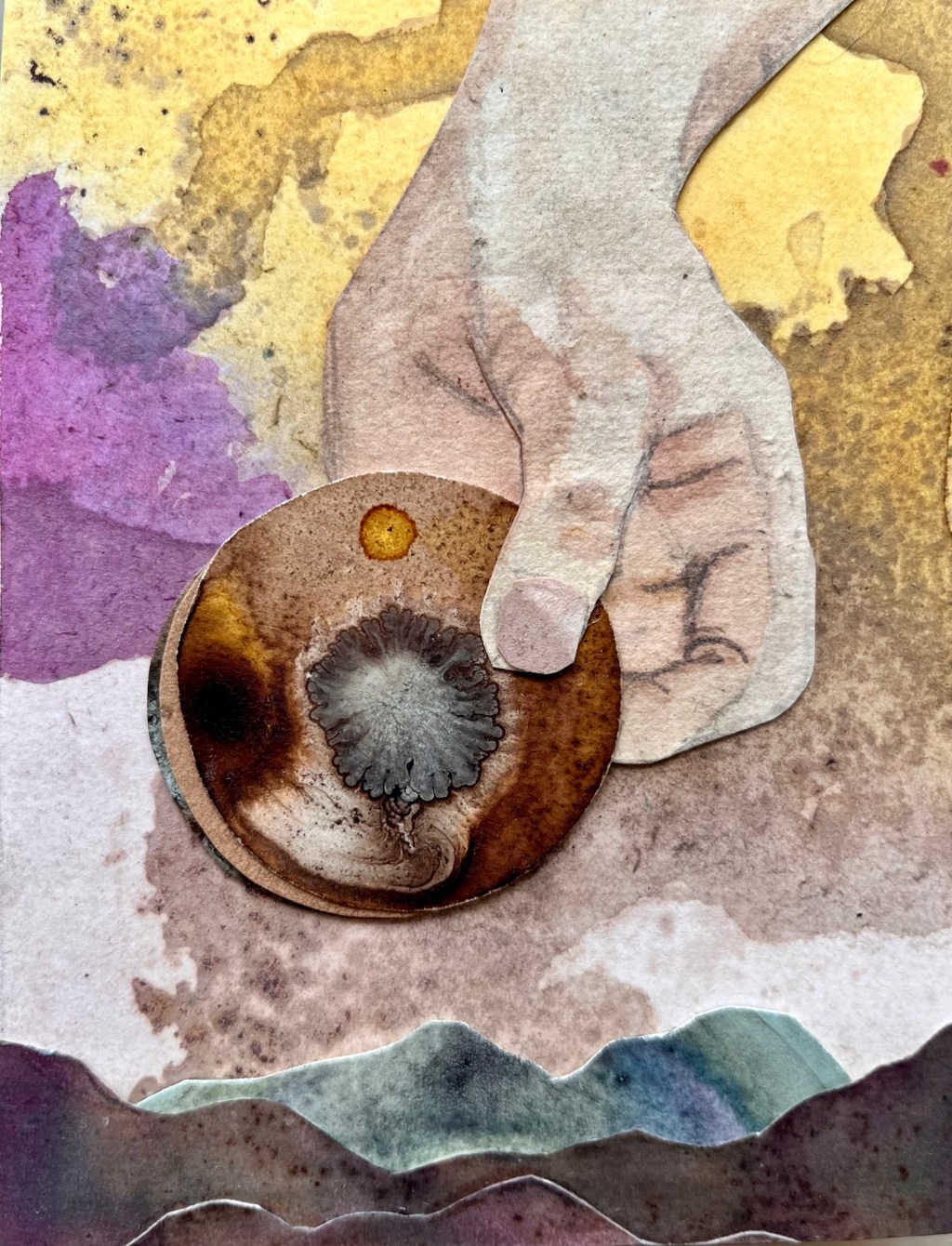 Guiding words/ideas: An offering and an invitation; hand of Source (or one’s higher self) offering a talisman to connect you with the planet; you are the Earth because you are made from earthly elements; an invitation to come home to oneself on this planet; in this home, you are loved and are a part of…